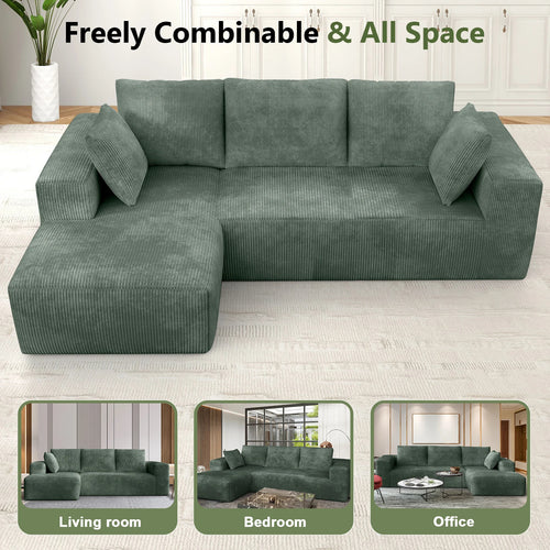 Durable L-Shape Sectional Sofa | Heavy-Duty Modular Cloud Couch | Vacuum Sealed Construction – Green